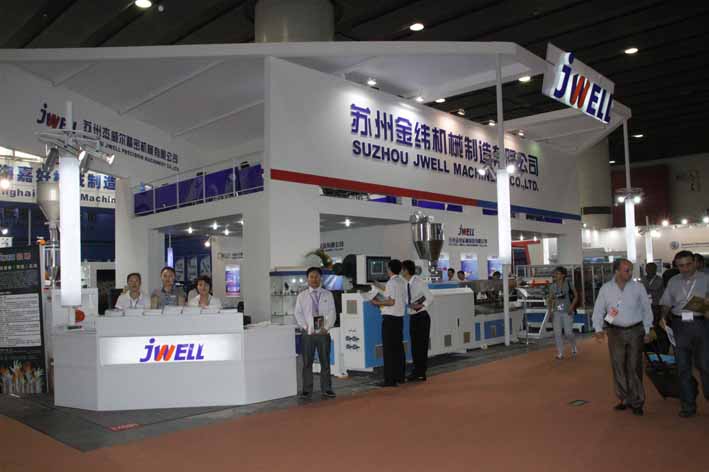 金纬机械对雅式展向来非常重视,本次展会,我司分别在1.1馆和5.1馆租用了700多平方米的展区,展示了新型塑料挤出机,波纹管卧式成型机,1600真空箱,瓦楞板成型,中空塑料成型机,高产量三辊压光机,挤出平模头,大型精密工业用辊筒,破碎机,塑料回收辅助设备等***新产品。***展示了金纬机械技术创新、节能环保、产量高、性能优的产品特征。