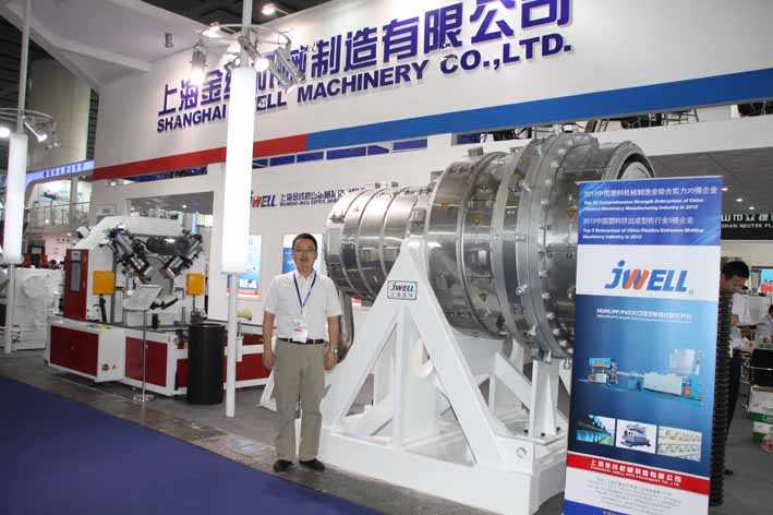 展会上我们展示了公司强有市场力的伺服直驱单螺杆挤出机、橡胶挤出机、管材大模具、全自动片材收卷机、侧开口撕碎机、管材无屑切割机、7米大辊筒、挤出平模头及中空成型机等生产线产品,受到了新老客户的肯定。