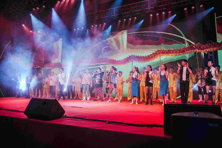 ***后晚会在一曲大合唱《***炫民族风》的旋律中落下帷幕。整台晚会激扬着青春的活力,洋溢着蓬勃的朝气,使两千多名观众饱享了一顿精神大餐,大家***后依然热情不减、意犹未尽。