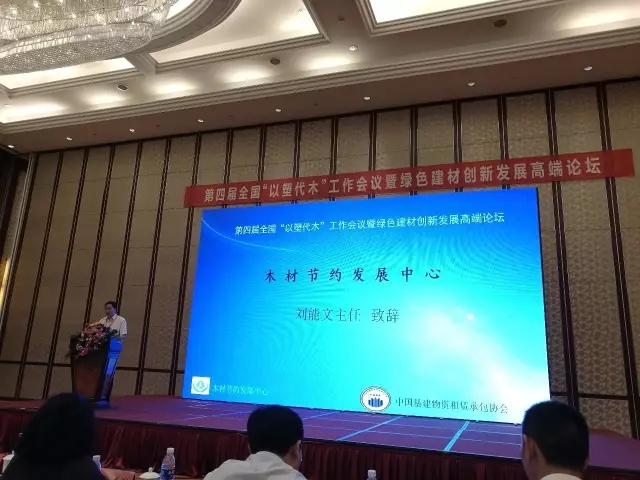 同时,木材节约发展中心主任刘能文先生也发表致辞,他向大家介绍了木材发展中心的发展历史,讲解了我国森林资源节约代用取得的成绩和面临的挑战,并在“以塑代木”节约森林资源方面提出了新的希望和要求。