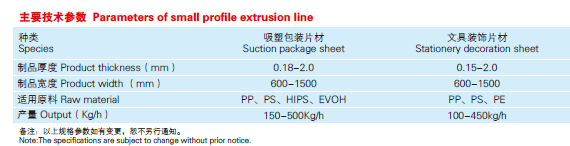 PP、PS吸塑片材、文具装饰片材生产线:PP、PS片材用途广泛,可吸塑成型后直接用于食品、电子产品等的包装;各种透 明、双色、磨砂、三维文具片。可根据客户要求定制多层共挤生产线可,产量范围从100-1200Kg/h不等。