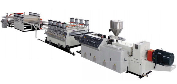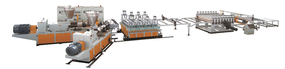 公司推出的新一代高产量PVC结皮发泡板生产线-用于生产线橱柜板、家具板、广告板、木塑建筑模板、木塑地板等。
