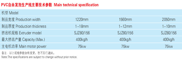 生产线由专用的锥形双螺杆挤出机、板材模具和三辊成型机等辅机组成。