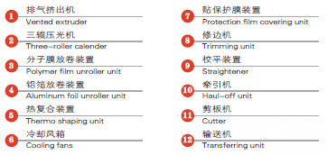 同时本司也提供传统的铝塑板生产线,产量500-800kg/h,线速度5m/min,可以生产宽度900-1560mm,铝箔厚度