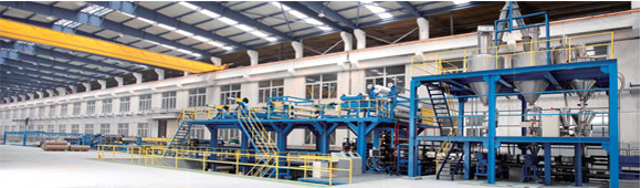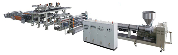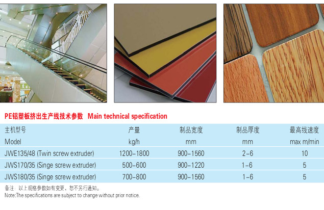 结合传统的生产工艺和实践经验,开发的高速铝塑板生产线,采用先进的挤出系统,可以生产高填充的阻燃级铝塑板,产量1800kg/h,生产线速度10m/min,可生产宽度900-1560mm,铝箔厚度0.18mm以上的产品。