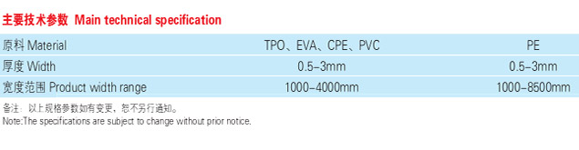产品适用:工业与民用建筑的屋面防水,包括种植屋面、平屋面、坡屋面、建筑物地下防水:包括水库、堤坝、水池防水、隧道、粮库、人防工程、垃圾掩埋场、人工湖防水等。
