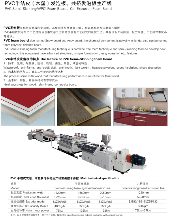 PVC半结皮(木塑)发泡板、共挤发泡板生产线