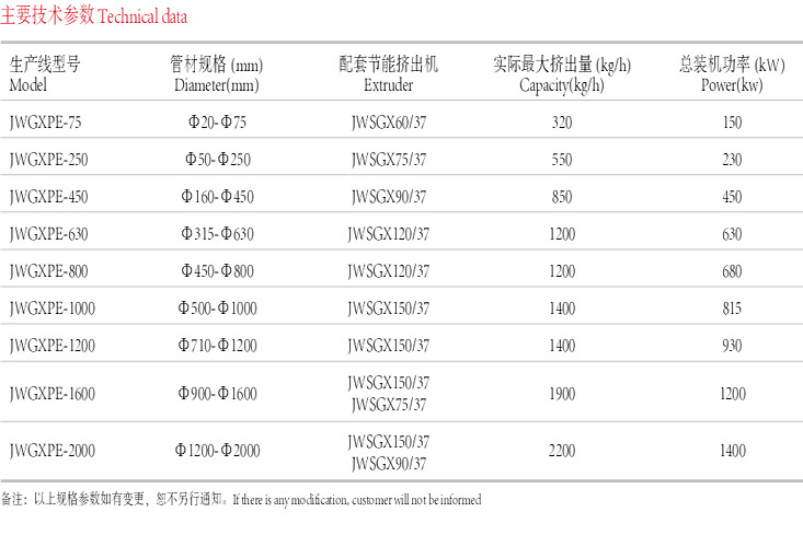 性能特点:该生产线是我公司采用欧洲先进技术,新研制开发的节能高速生产线,适用于HDPE、等聚烯烃类管材的高速挤出。PP与普通生产线相比,其节能效果达到35%左右,其生产效率增加了1倍多,不但可以节省了场地及人力成本,还提高了效率。该生产线外形美观,自动化程度高,生产稳定可靠。